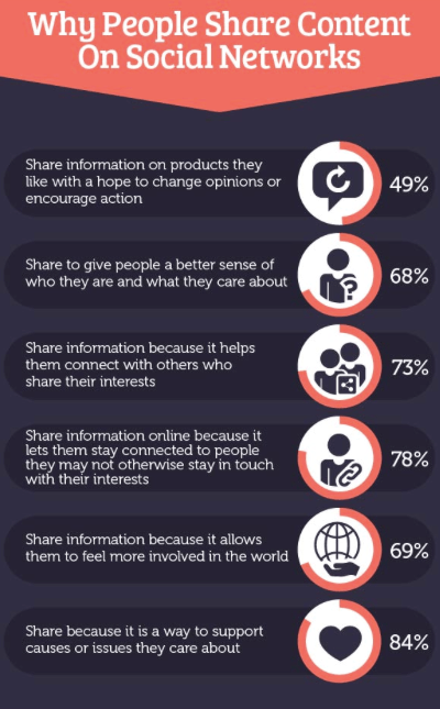 Research has shown that some of the top motives for people to share content on social media are to: